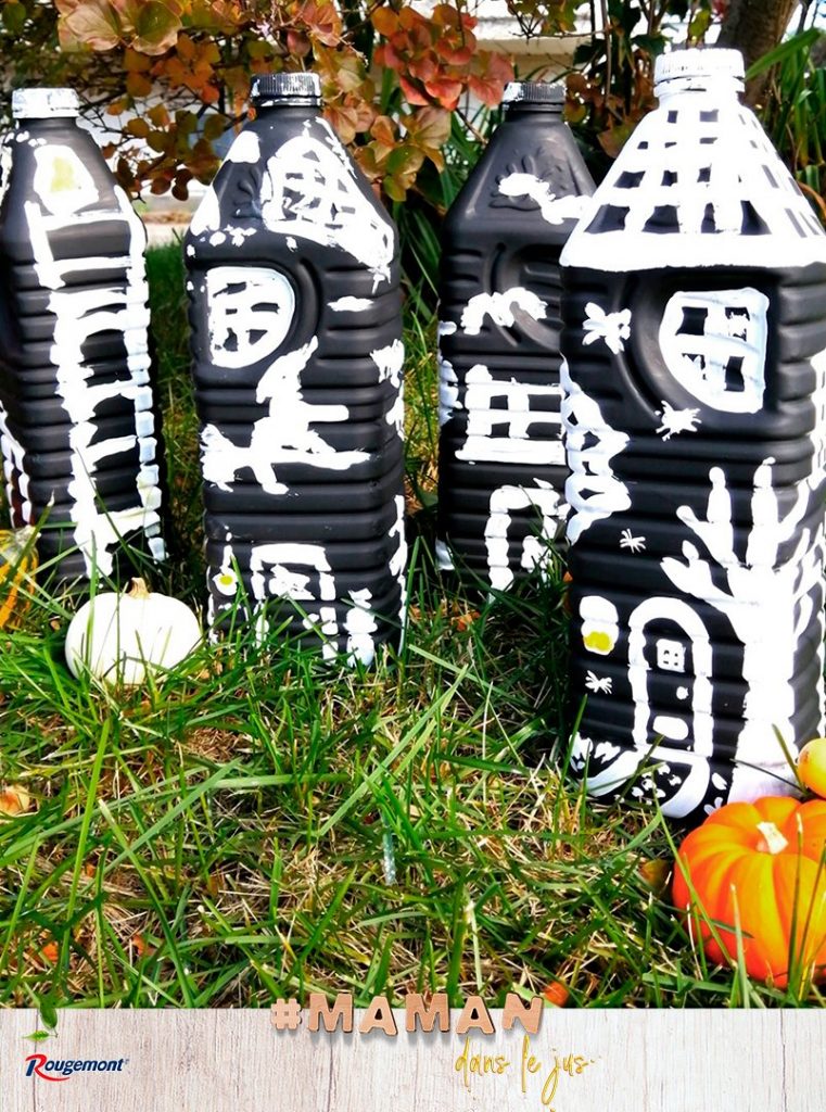 Donnez une deuxième vie à vos contenants de jus Rougemont et reproduisez les maisons hantées de Maman-Bricole! Elle suggère d’utiliser de la peinture acrylique et, si le bricolage est installé dehors, d’ajouter une couche de vernis, ainsi que du sable à l’intérieur pour éviter qu’elles ne s’envolent.